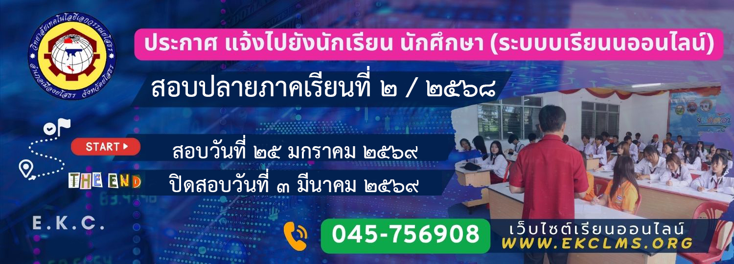 นักศึกษาสามารถใช้ ระบบ ekc online learning โดยใช้ Username = รหัสนักศึกษา & Password = เลขบัตรประจำตัวประชาชน